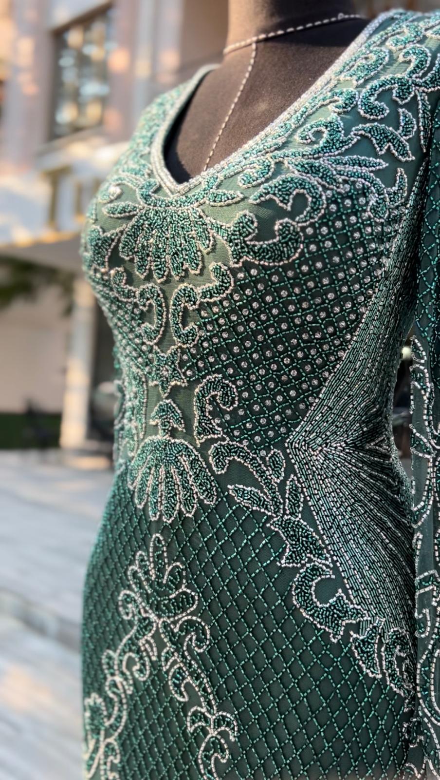 Zarafeti ve şıklığı bir arada sunan bu ithal el işlemeli abiye elbise, özel davetlerin vazgeçilmez parçalarından biri olmaya aday. İnce detaylarla işlenmiş el işçiliği, elbiseye sofistike ve dikkat çekici bir görünüm kazandırır.