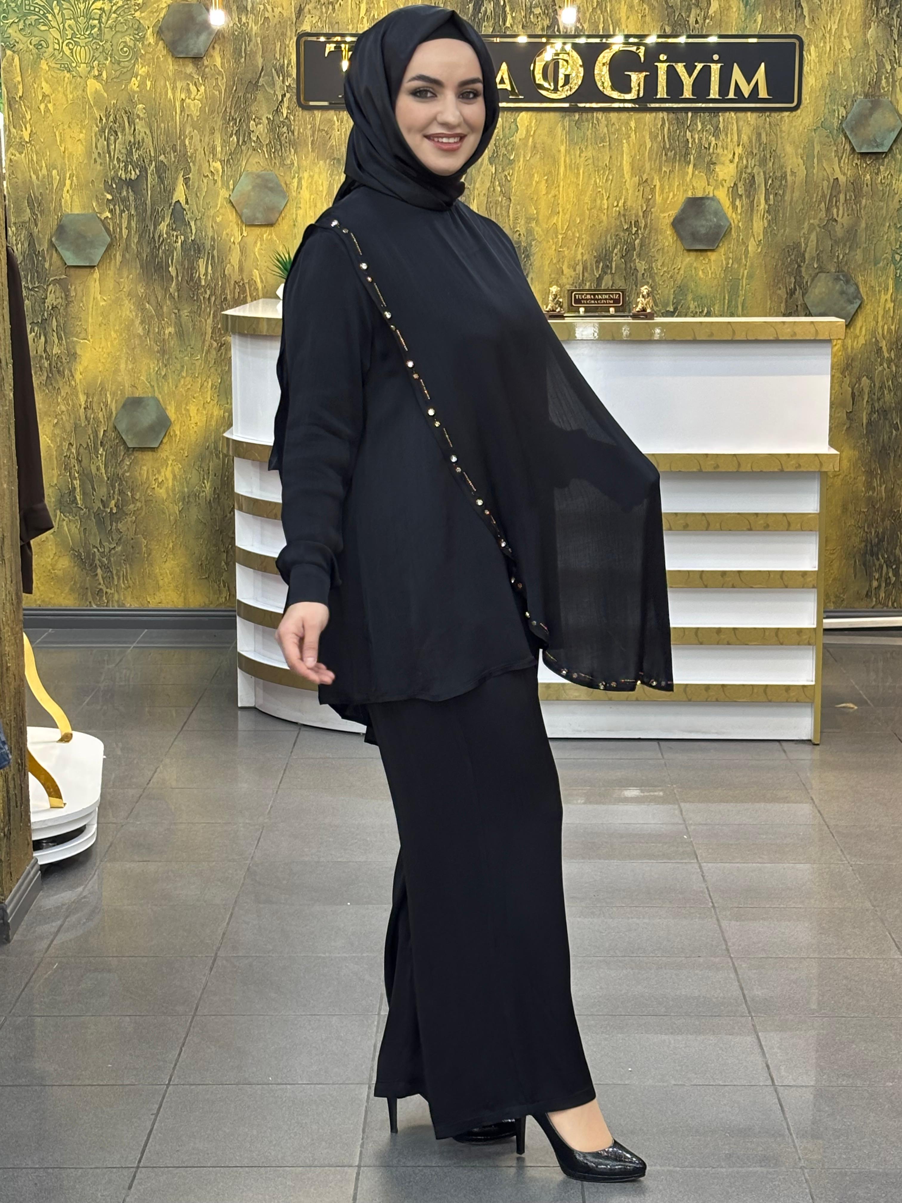 Rahat kalıp tasarımı hareket özgürlüğü sunarken, beli lastikli bol pantolon yapısı vücuda uyum sağlayarak ekstra rahatlık sağlar. Minimal ama şık detayları sayesinde hem günlük kombinlerde hem de özel anlarda rahatlıkla tercih edilebilir.