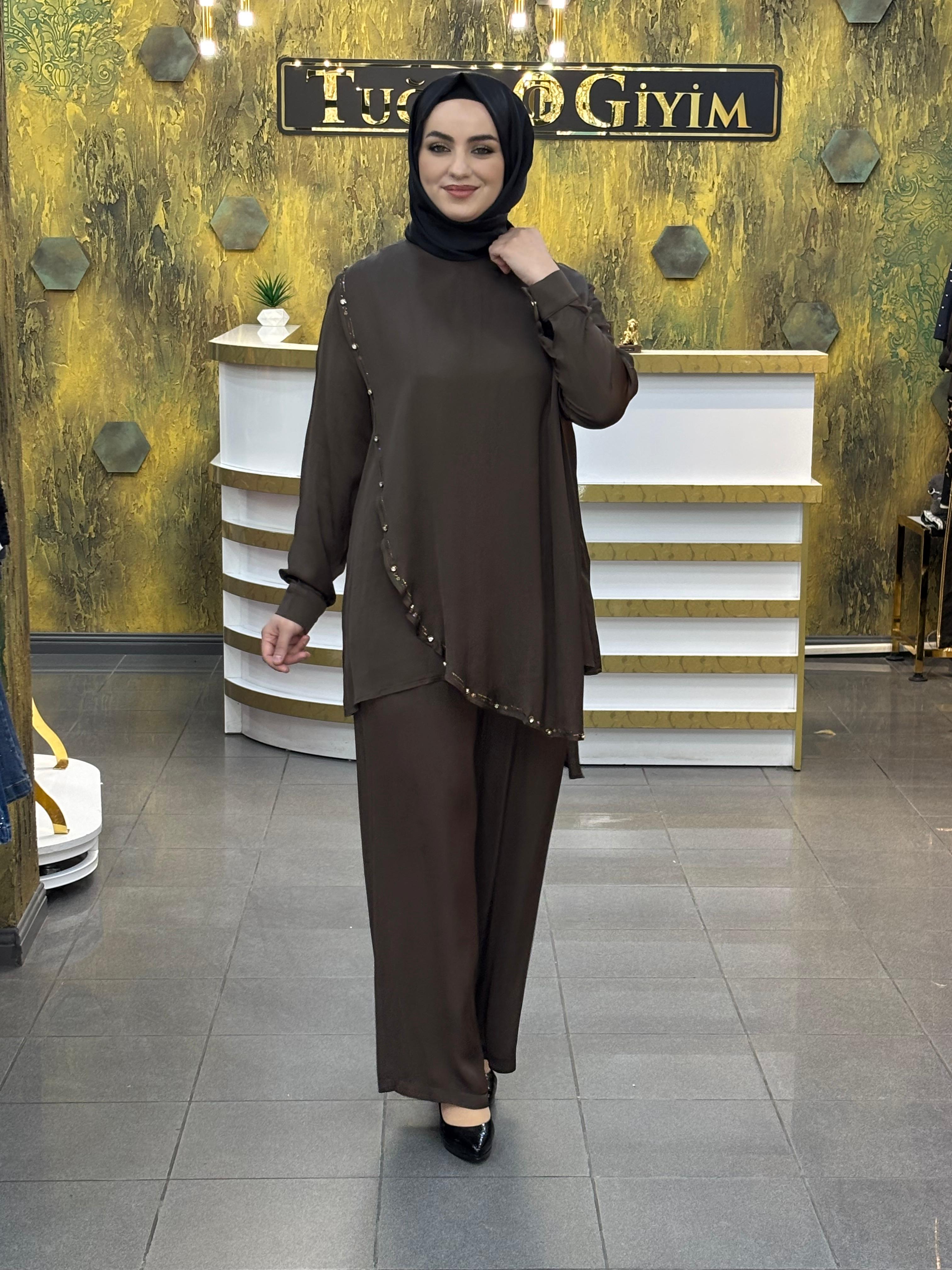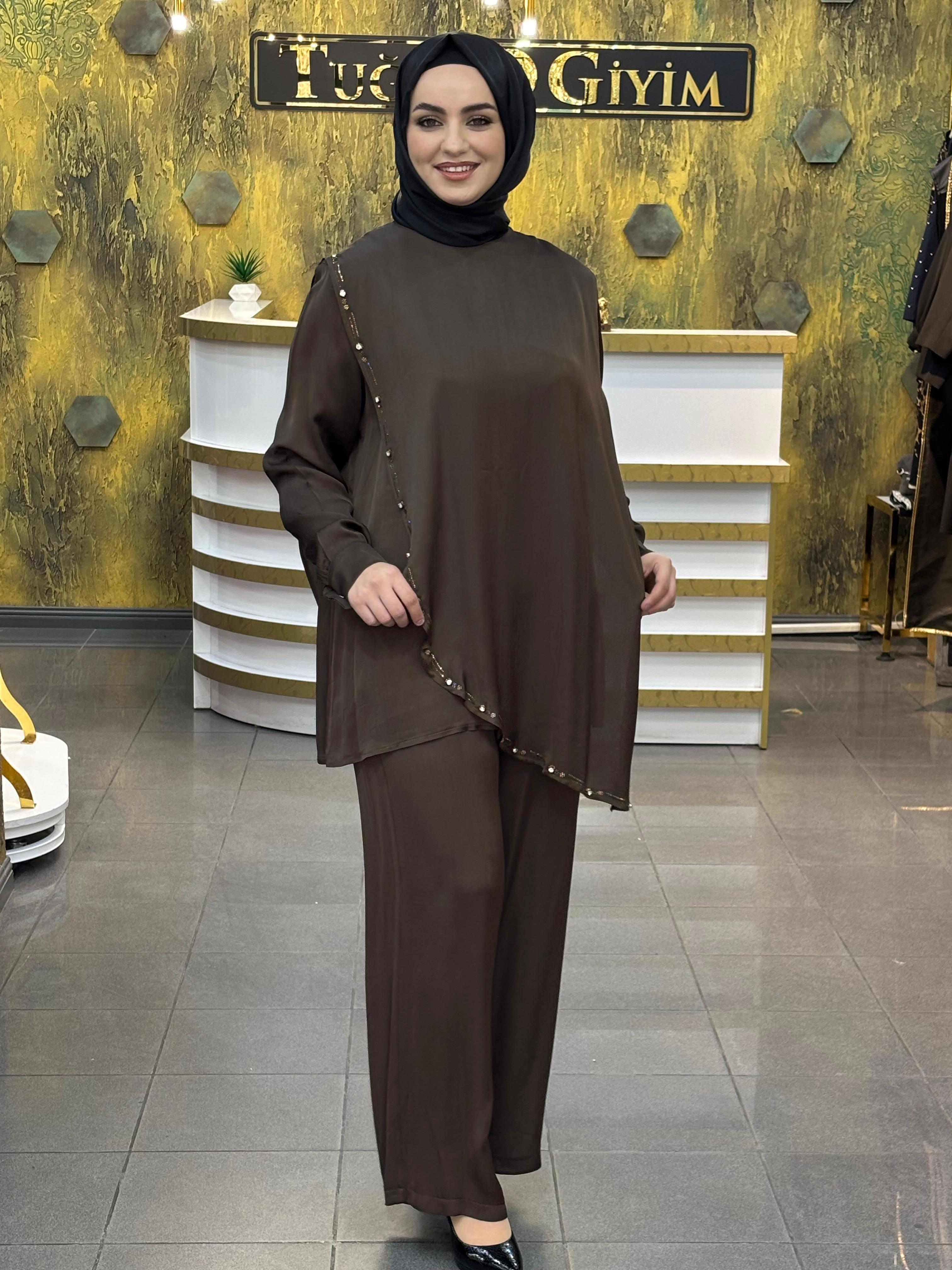 Şıklık ve konforu bir arada sunan ithal saten kumaş ikili takım, modern ve rahat tarzıyla dikkat çekiyor. Akıcı ve hafif saten dokusu sayesinde zarif bir duruş sunarken, gün boyu konfor sağlar.