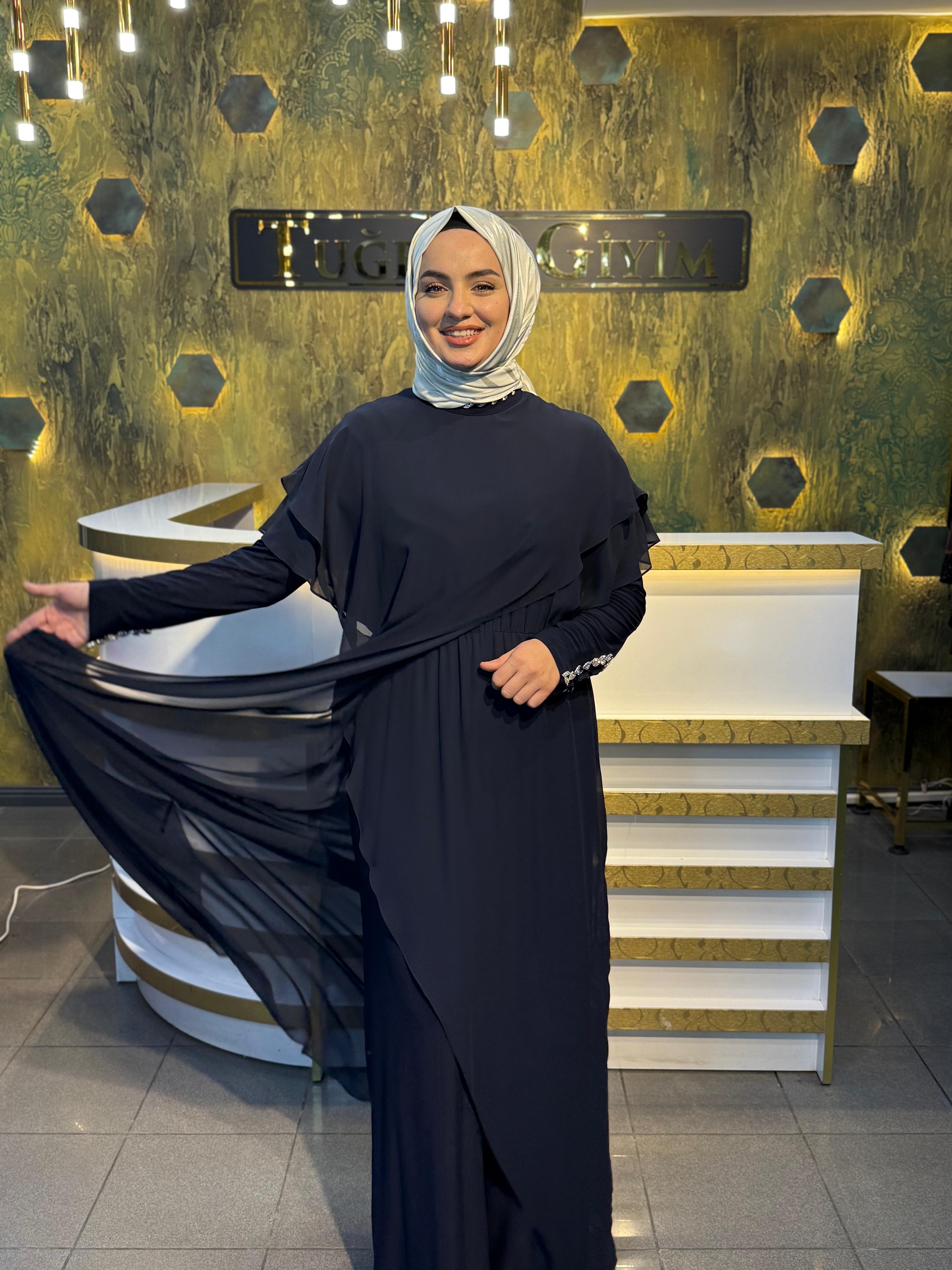 Lacivert ve siyah renk seçenekleri bulunan bu model, stil sahibi ve rahat bir görünüm elde etmek isteyen kadınlar için tasarlanmıştır.