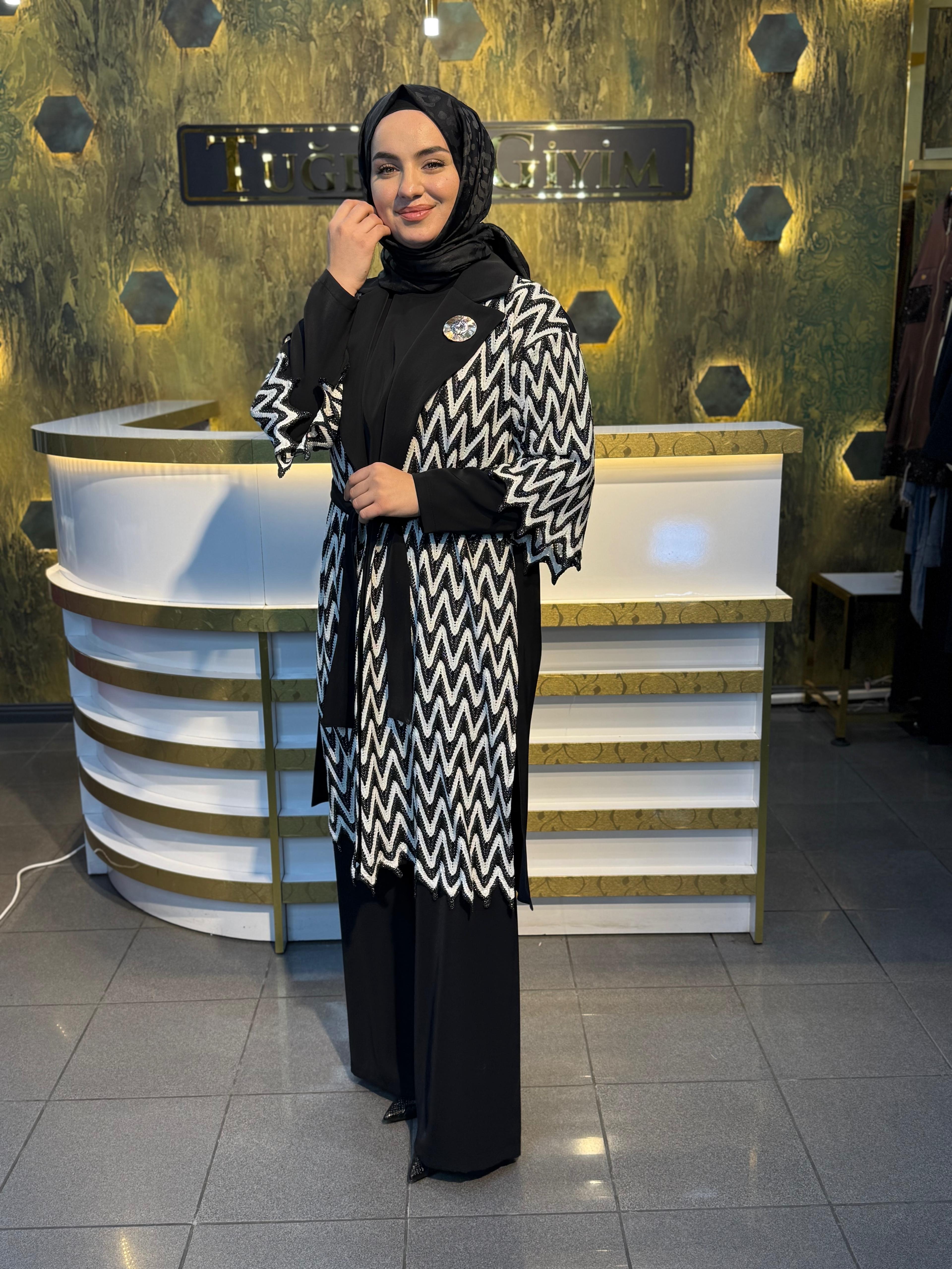 Şık davetlerde, özel günlerde veya günlük kombinlerde rahatlıkla tercih edilebilecek bu model, modern tesettür giyimin zarif örneklerinden biridir.