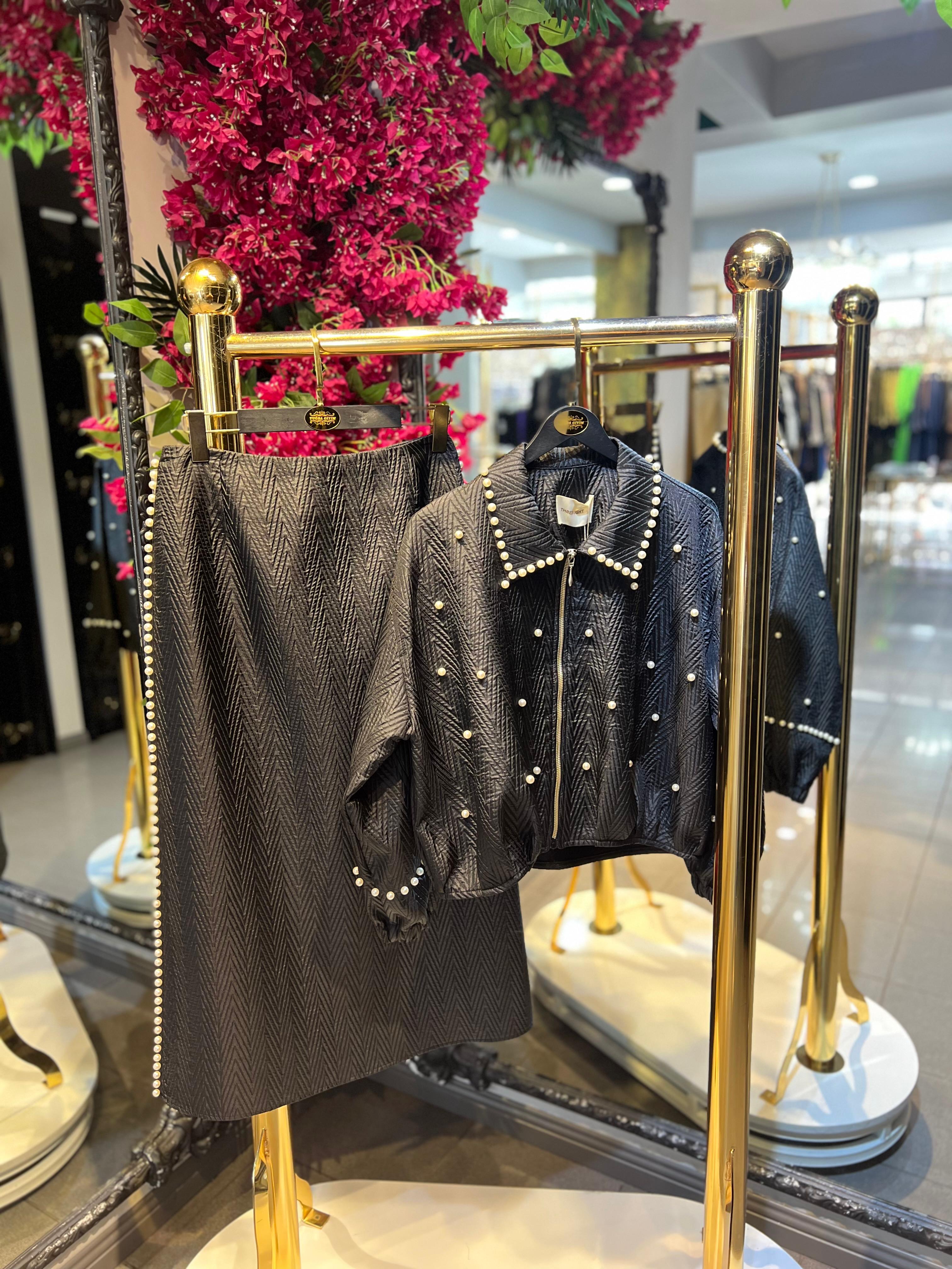 Zarif ve modern tasarımıyla öne çıkan ThreeLight marka takım, inci detayları ve şık kesimiyle dikkat çeken özel bir modeldir. Takımın üst parçasında yer alan bomber ceket tasarımı, klasik ve modern tarzın birleşimini sunarken üzerindeki inci detayları ürüne zarif bir dokunuş kazandırır.